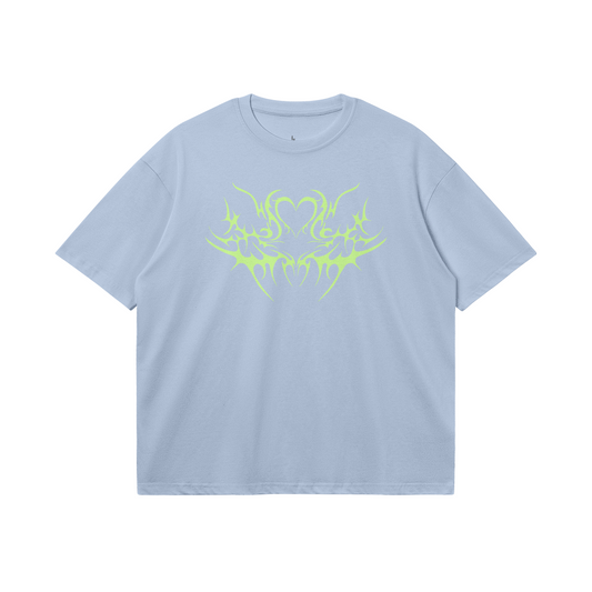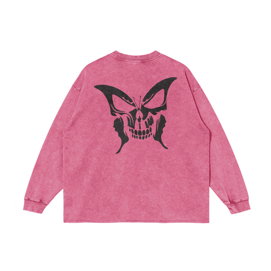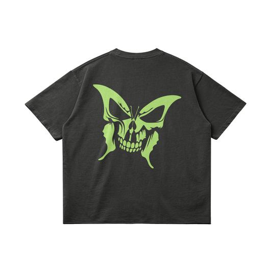 B FLY SKULL - Back Logo Faded Look Raw Hem Loose T