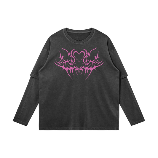 CONNECTED HEART - Washed Faux Layered Long Sleeve